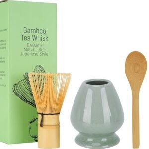 - 4pc matcha set: bamboo whisk, whisk holder, matcha scooper, tea wooden spoon You can also add Matcha powder 50g ceremonial grade Delivery all over Lebanon